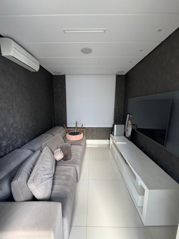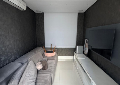 Sala de TV com ar condicionado e planejados